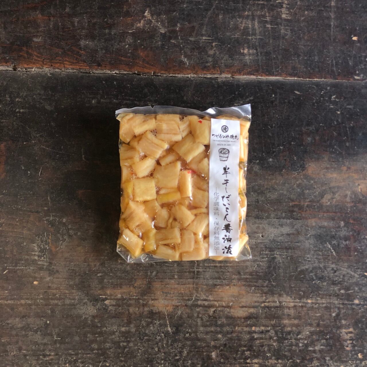 半分程度に干した大根をこだわりの調味料でお醤油漬にしています。